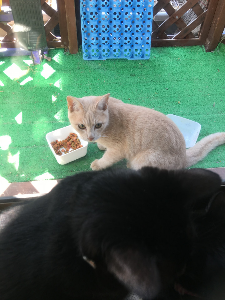 この子最初はガラス越しでも逃げてましたがカリカリ貰えるわかるようになったらガラス越しでなら逃げなくなった(⌒▽⌒)