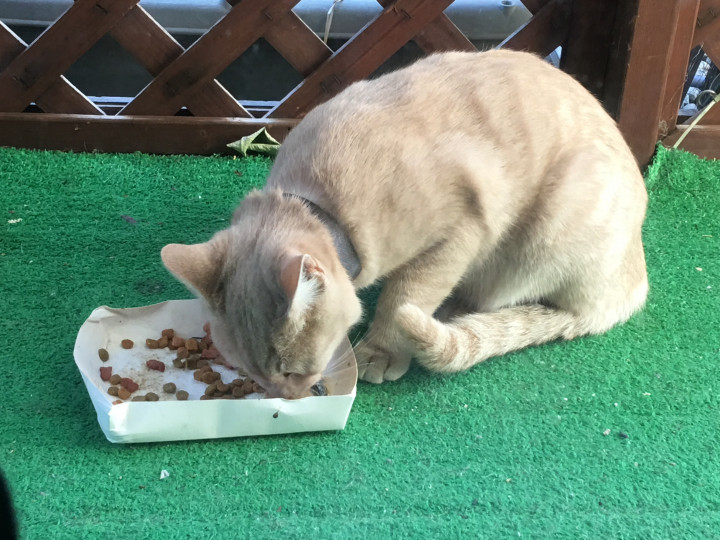 窓越しでカリカリ食べてる時に窓を開け話しかける