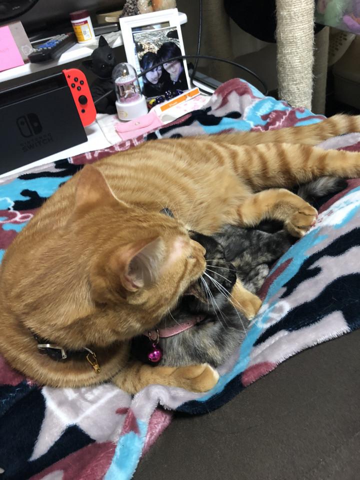 アベにぃも1ヶ月と2週目で、ママや保護してくれた元親様とお別れして、ママちゃんの元へ来たらしいわ