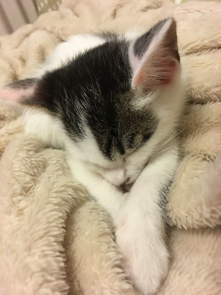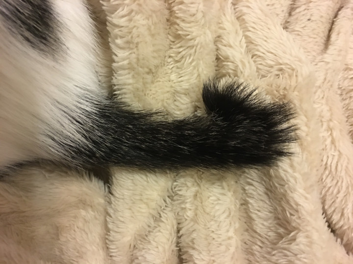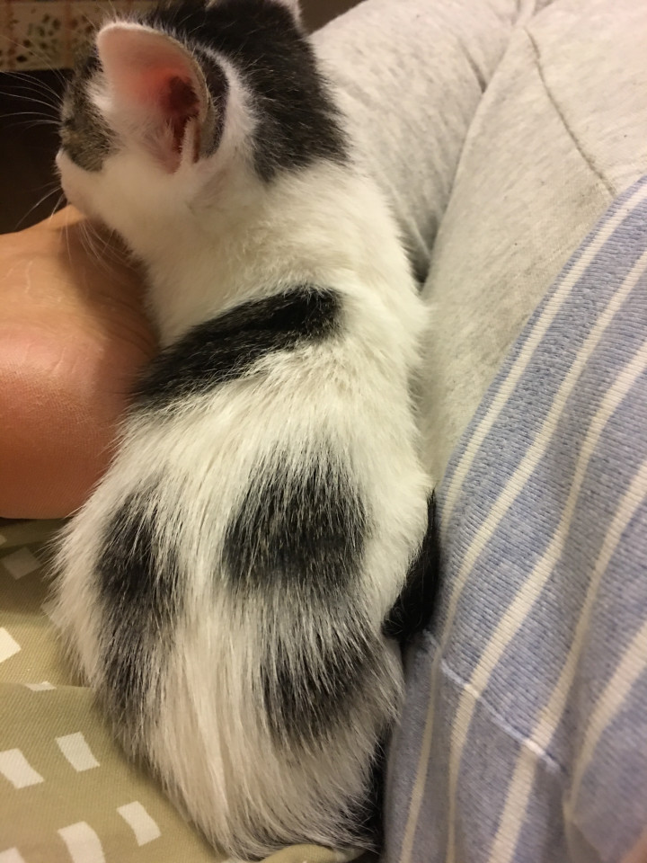 おしりにひっついて、足にアゴをのせて寝ていました。