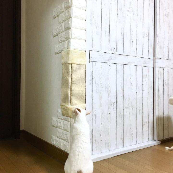 壁に取り付けてある爪とぎ周辺の