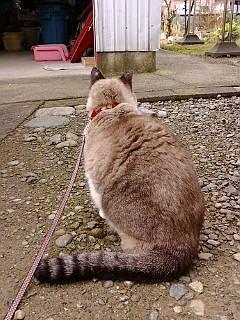 やだよ!まだ、外にいたいよとすねるちこの後ろ姿でした。