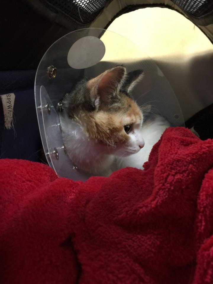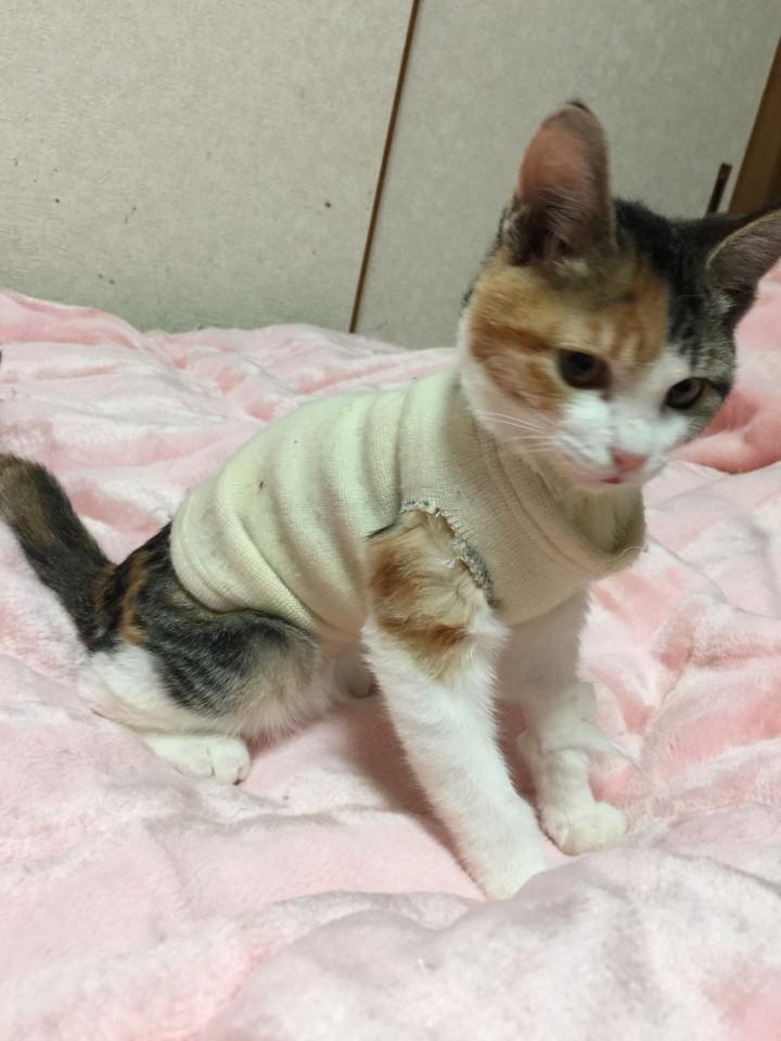 保護当時餌を食べたらブクブクと泡を吹き苦しそうにしている姿が、痛々しく見ていられなかった。血管を取り除かないかぎり、普通に餌を食べる事が出来ないので、良かったと思ってます。