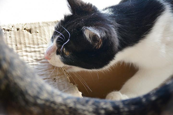 マルリはとうとう段ボールに穴をあけ、その中に潜り込んでしまう。