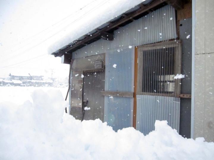 保護猫ハウスの周りは落ちた屋根雪と除雪した雪で入れません。