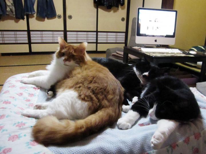 今日は家のにゃんこトリオとこたつで一日中ゴロゴロします^^。