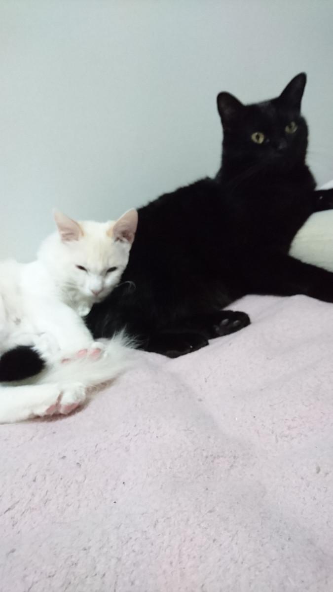 基本、暴君の白ぶちさんは、上の2にゃんに逃げられてます(汗
