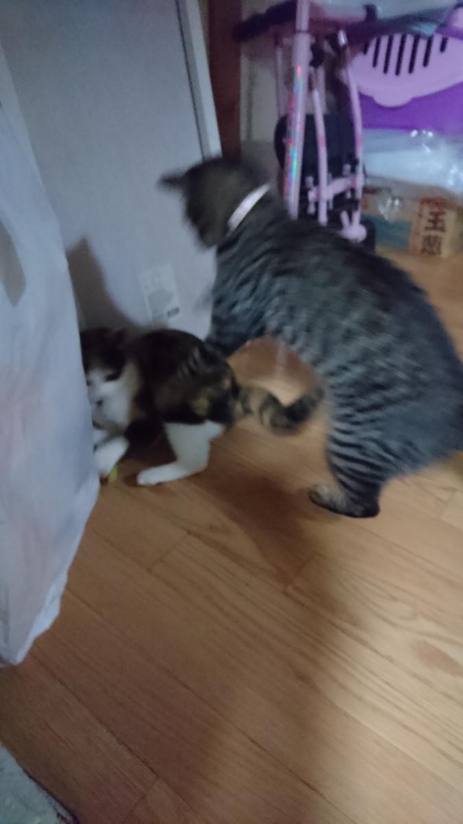 そーしてる内にテンションが上がって本気でじゃれあい愛が怒り倖が引きながらもまたガブッ最終的に母に2匹して『これ!』と怒られる(笑)