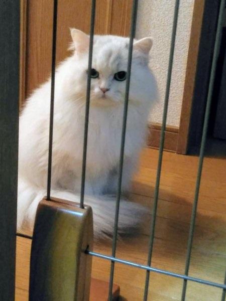2階の保護猫マロンを厳しい目で見つめております
