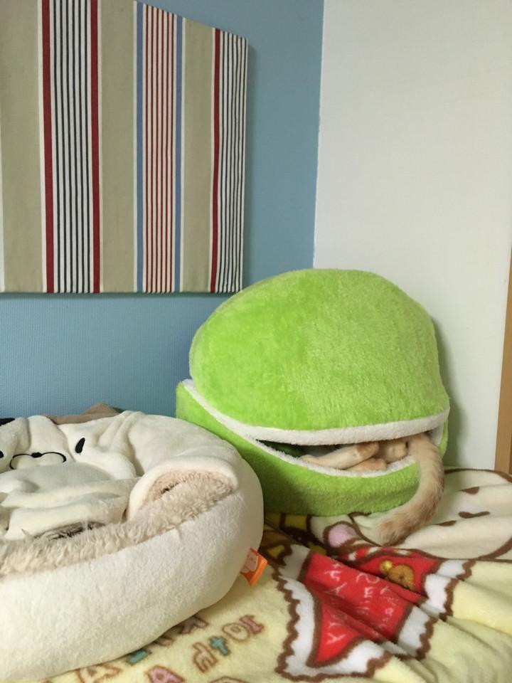 こっそりイタズラしてたので、おてても出てます。主婦は見ていた。
