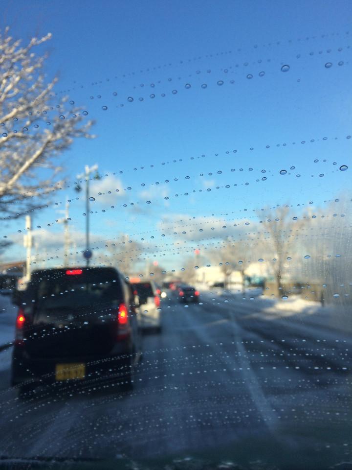 きれいな青だったので思わず、ぱちりってワイパーの跡が笑えます。