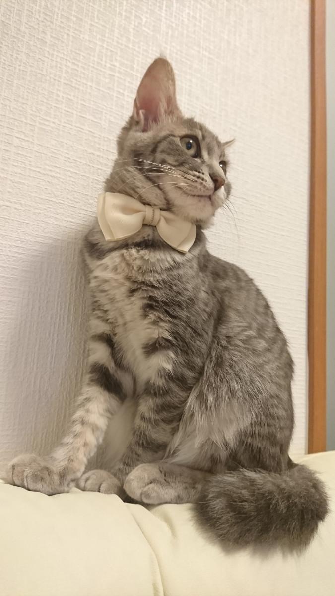 ソファの背もたれの上でモデルポーズの蘭丸を撮りました!