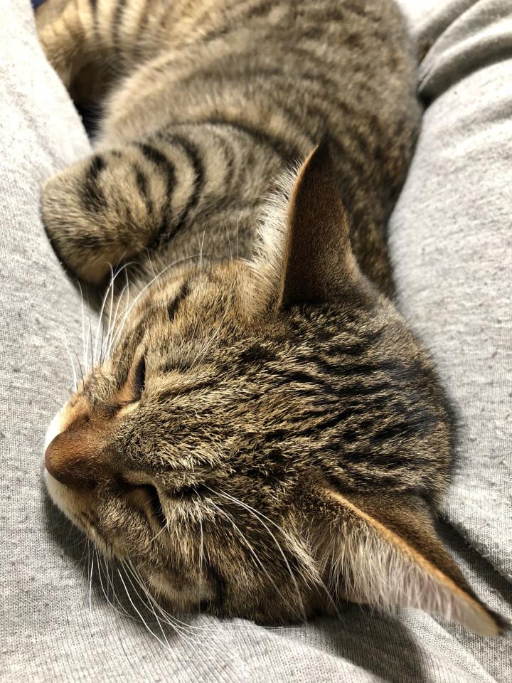 シオンとの距離感と云うか、信頼は少しずつ得て来ていると思います。自分の胡座の中でくつろいだり寝たり、また、舐めてくれるのでちょっとは安心して貰えているなら嬉しいです😊