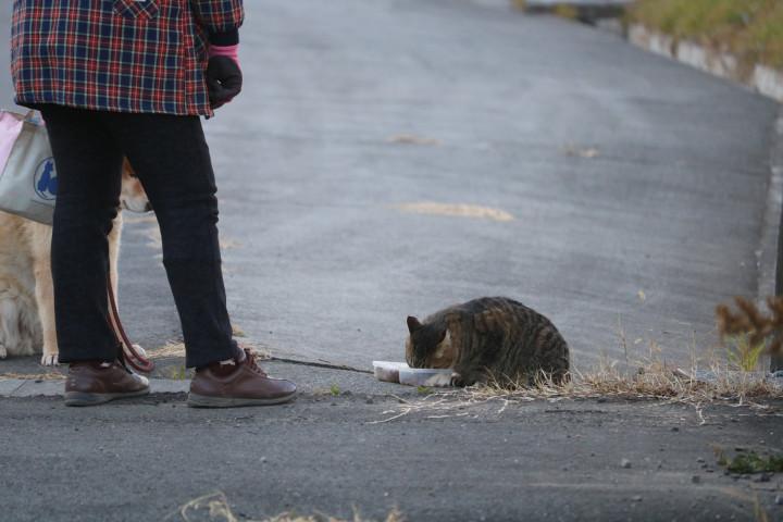 散歩に行くと出てくるのよ。いつもご飯をあげてるのよ。」
