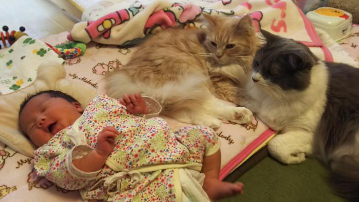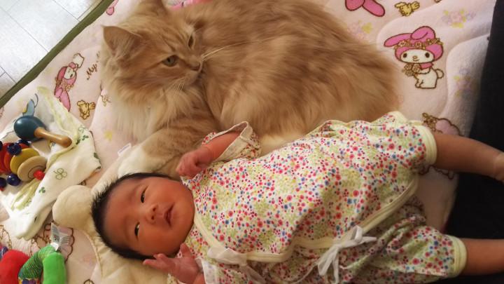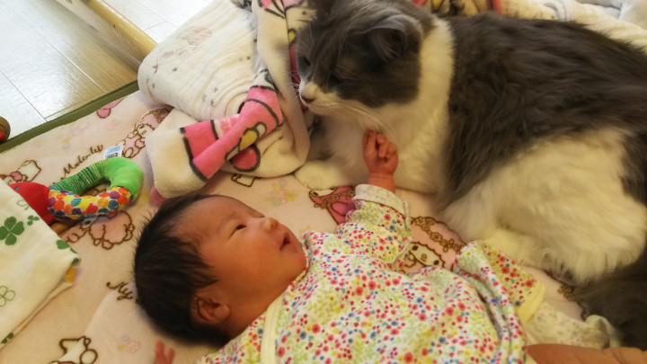 赤ちゃんのモロー反射の予測不能の動きに警戒しております。