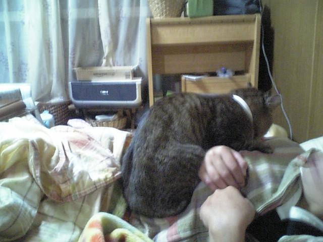 雷子ちゃん( 元テラママン)が「慣れてるみたいだから、今日もお泊りさせようか~♪」 今日一日は家をウロウロ。。。天気も良くて日光浴したかろうと窓際に寄せてあげるけどウロウロ。。。それでも不安になるとおかんに挨拶。。そして抱っこ。。そんなこんなでもう子供の帰る時間。