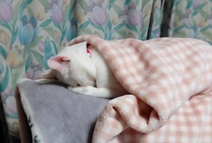 現在は、ソファーの上で御免寝中です(笑:超かわいいです~)