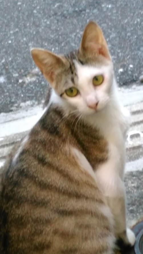 帰りに、実家に寄ったら、2匹の野良猫たちが迎えに出てくれました。痛い目(避妊手術)に合わせたのに、