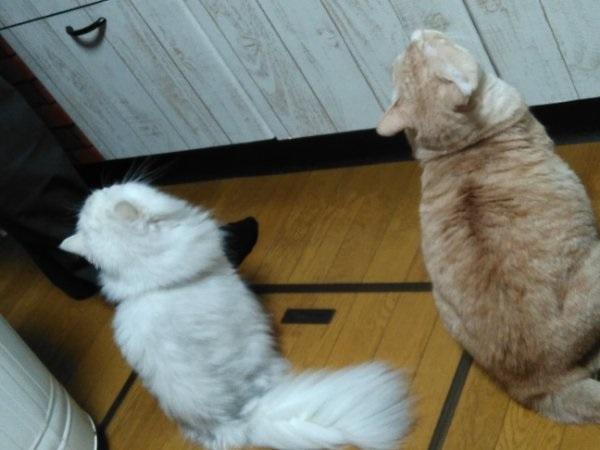 旦那が帰宅すると「べるたんにゴハン食べさせてですよ~」とついて歩きます。