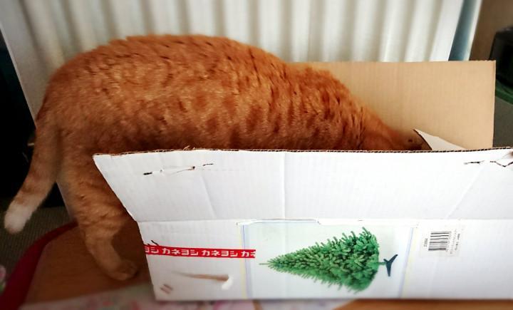 ☆片付け準備中、クリスマスツリーの箱にin。やると思ったよ(笑)。