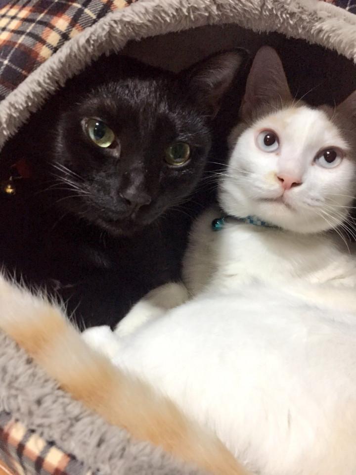 クロは5.6キロあるのでまだまだ体格はシロがちっちゃく見える感じです。