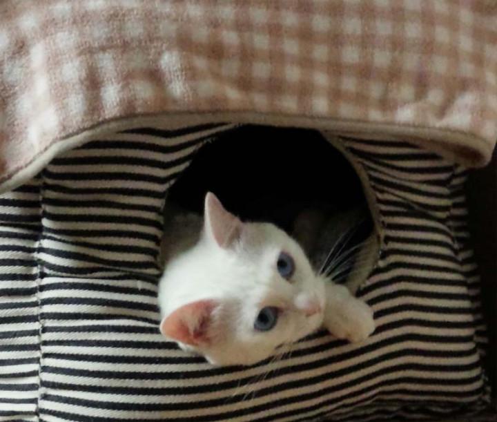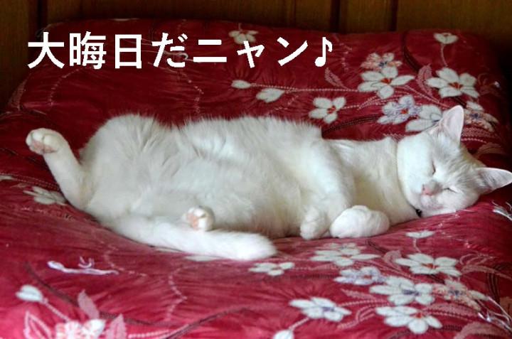 朝ご飯を食べて寝て・・先ほど(お昼頃)起きて出して、ご飯を食べて、家の中をパトロールすると水を飲んでまたまた炬燵に入って寝るようです。たぶん夕方になると起きだしてオヤツかご飯を食べると「ニャンニャン♪」(おとうしゃん遊ぼう~ニャン♪)というパターンのようです。