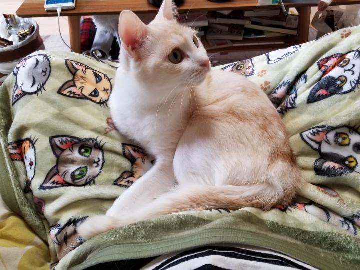 ご褒美に膝の上で寝てあげてるの(^-^)