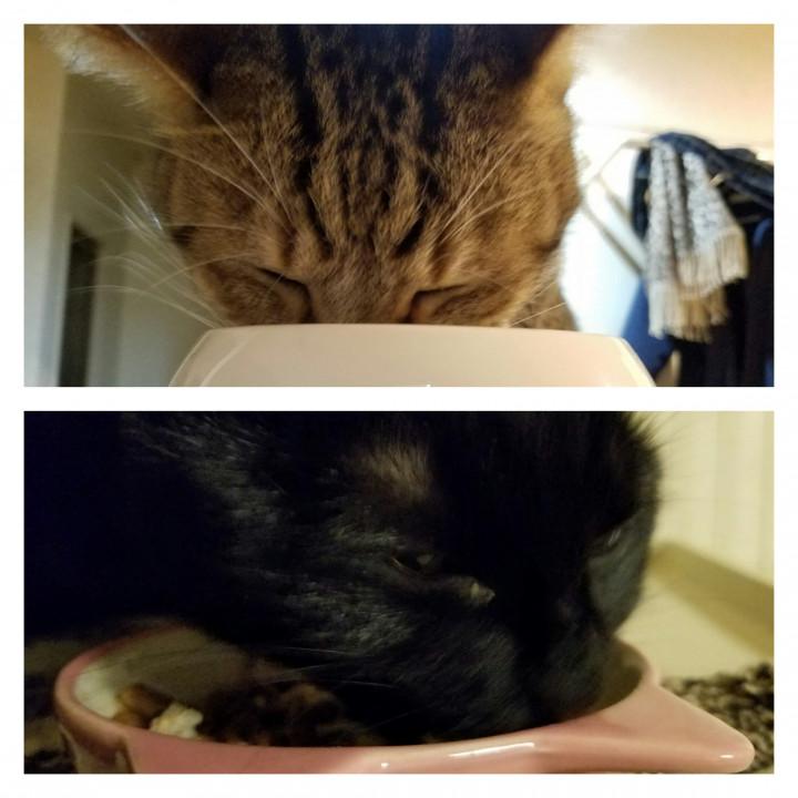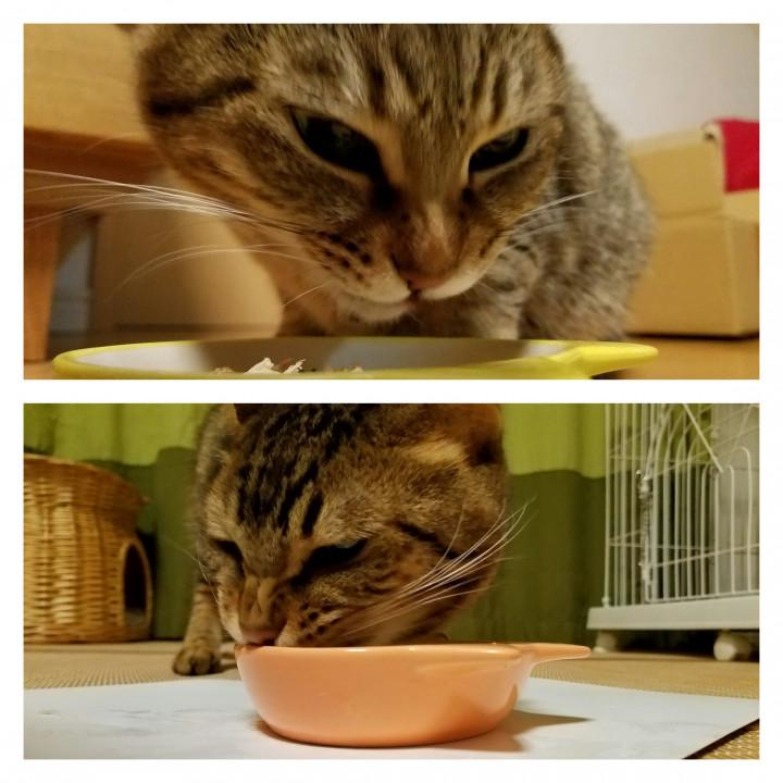 ドラくんは途中でイラついたのか、自分のお皿を放棄しニコちゃんのお皿へ・・・同じだってのに・・・😥