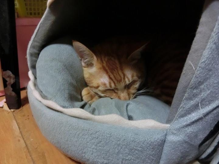 えんちゃんは爪研ぎベットが指定席、しかしもうちょいしたら入れなくなる予感w