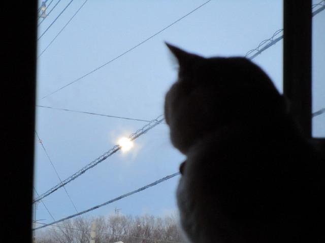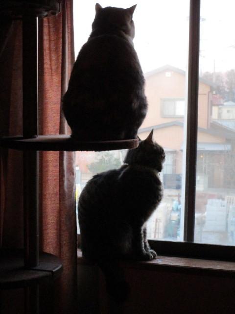 ご近所猫が一番乗りでやってきて、窓に張り付きお家の中をを観察してました。