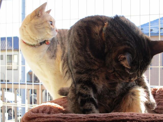 強風の中、日向ぼっこに付き合ったり