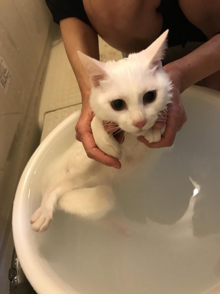 アンアンは年のニャンコなので、旦那さんが駄目だと言いました😔私は昔からニャンコをお風呂に入れていたので、慣れているのになあと思いました😔