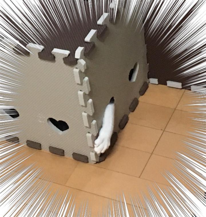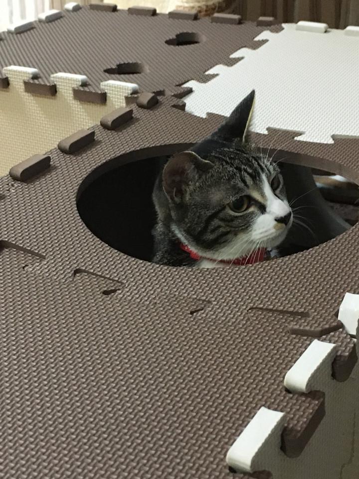 オットの人の力作、変形トンネルでしっかり遊んでおりました。次は補強策を考えるかな…w