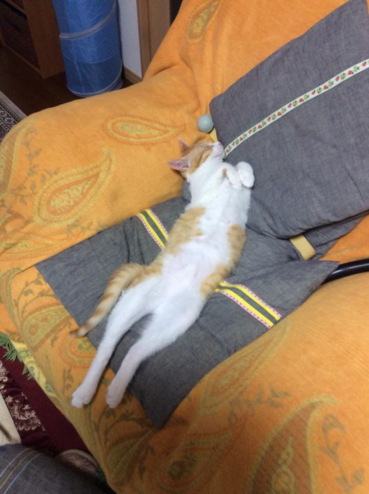 いっぱい遊んだ後は、ご覧の通りのびのび寝ております。