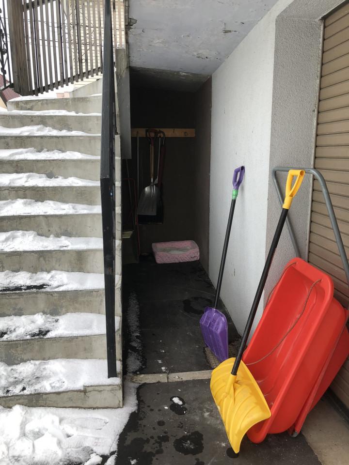 うちの階段下はちょっとした物置になってるから、雪凌げるから使えばいいんだわ