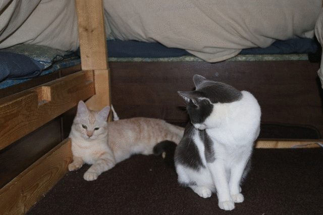 チーとふぅはお部屋で追いかけっこ。コタツの生温かさが気に入ったようです。