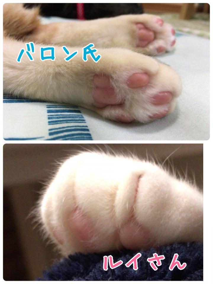 どっちも全部ピンク。…あ、ルイさんの左手の親指?部分にひとつ黒いお豆さんはあります。