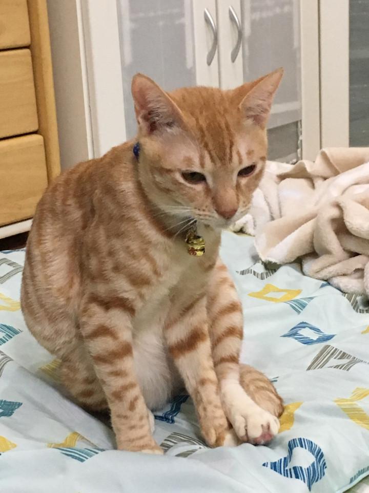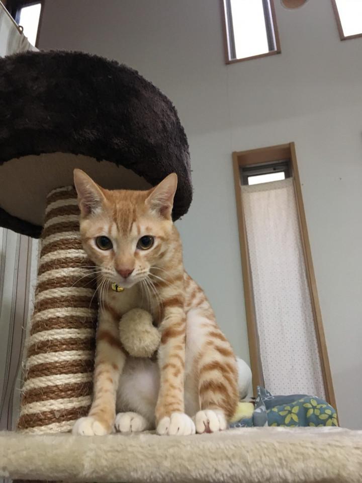これは落ち着いてから見たら、小脇にキャットタワーのボールを抱えてた当のバロン氏。