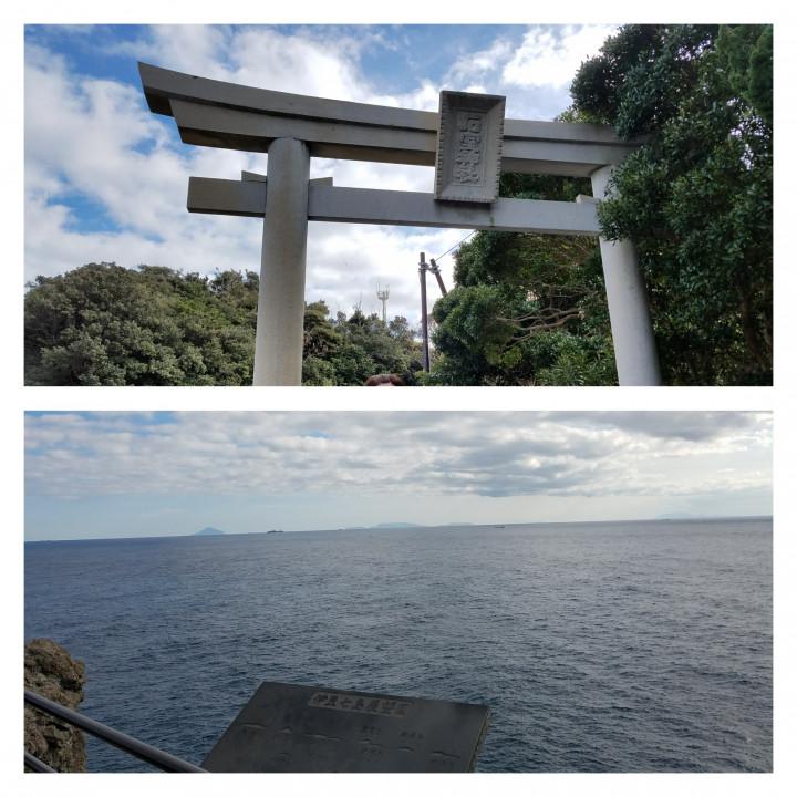 灯台の向こうには神社がありまして、崖の突端で御守りも売ってるんですよ~。