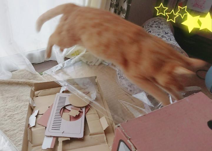 ボロボロになり、買い換えました。組み立て途中からちょっかい。
