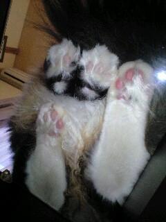 あまりよく見えませんが、レミーの前足と後足の肉球が!