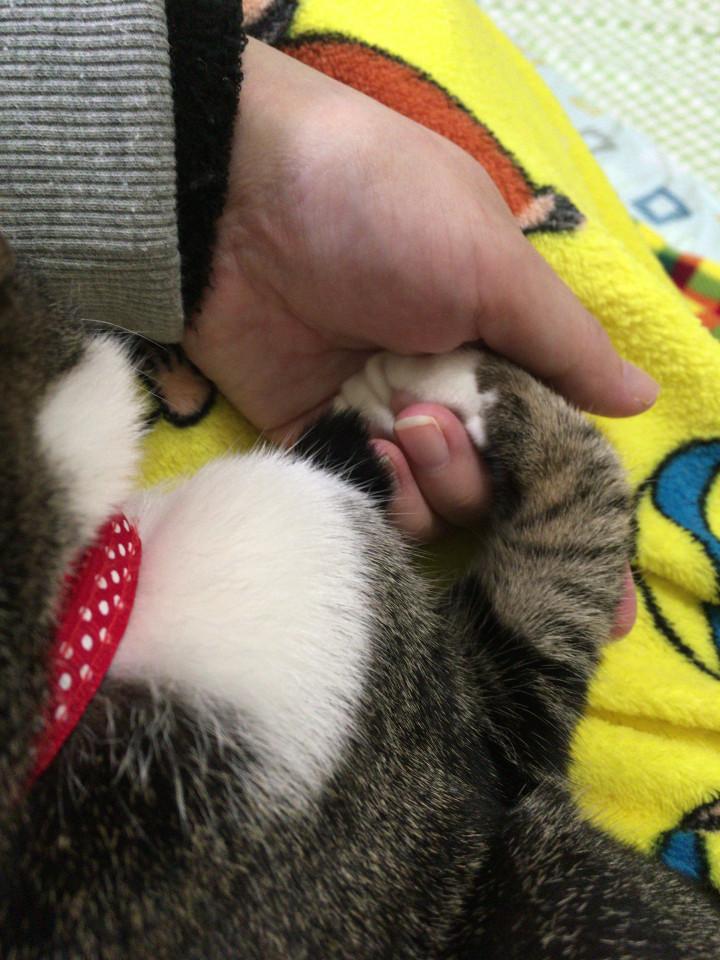 おお…確かにいつもよりぬくい!!(・∀︎・)けど、しばらくおてて繋いでたら「ぺいっ」てされました。