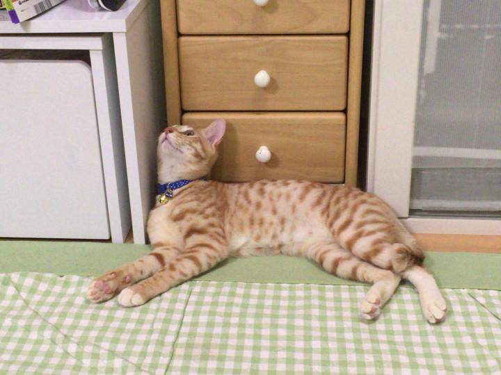 バロン氏のが薄毛なのに、この子は一人空間で寝るのがデフォルト。冷えそうで心配なんですけども。