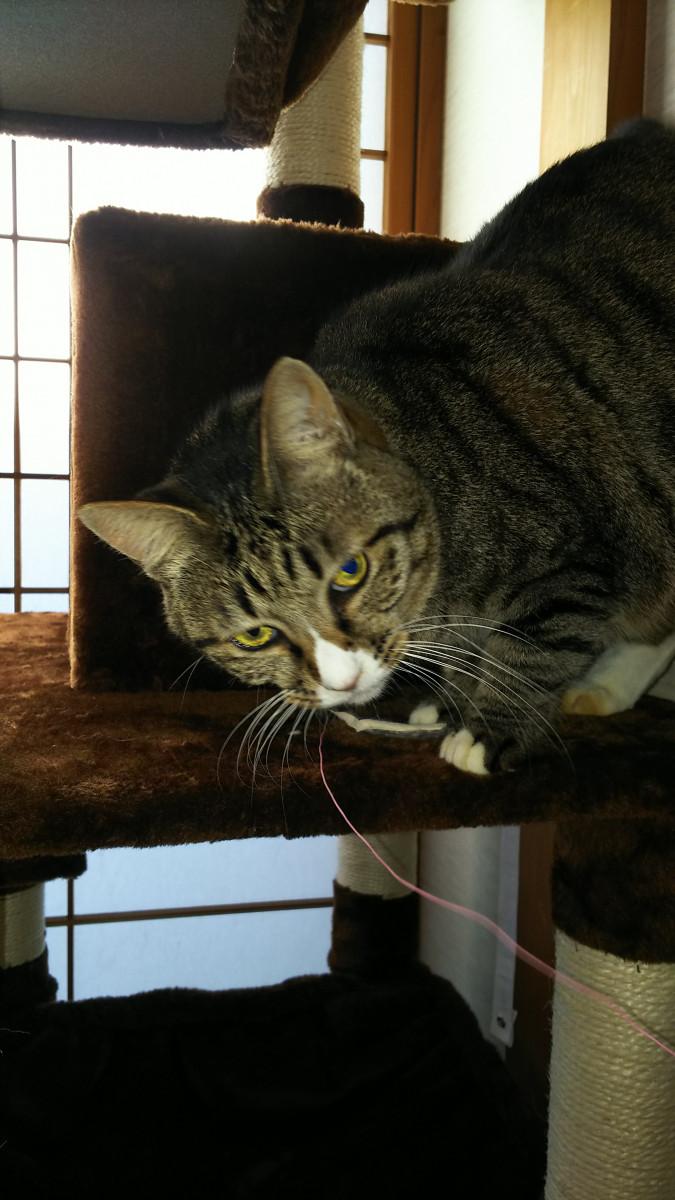 お腹が空くとタワーから降りてニャ~とご飯の催促。