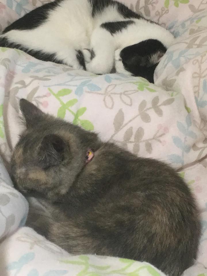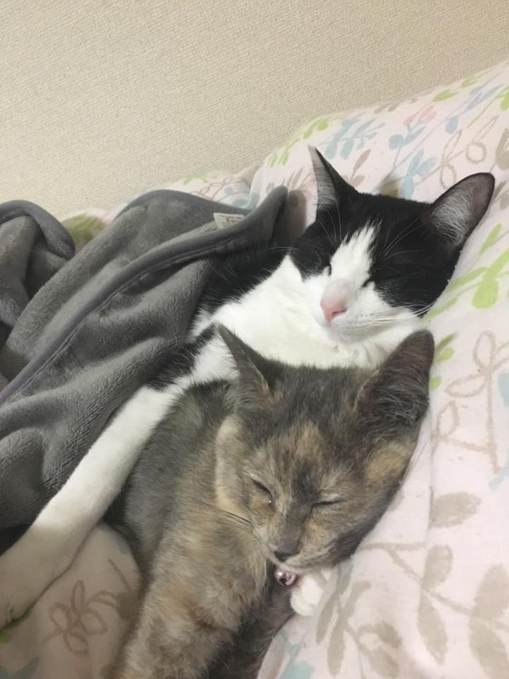 そうそう、前回少しずつ先住猫ちゃんと距離が近づいてるまるちゃんについて日記を書きましたが、日記アップの翌日にお涙ちょうだい級の写真が送られてきました!