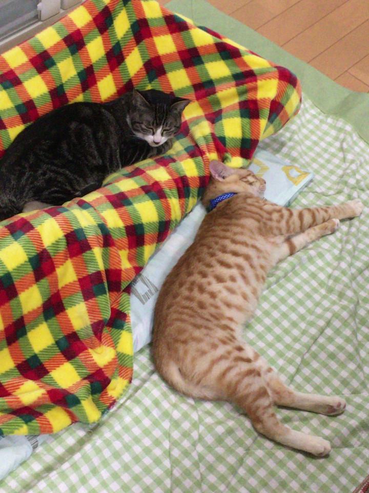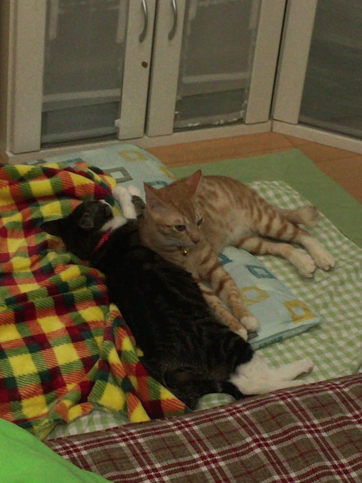 ルイさんはたっぷり遊んでもらって満足の就寝。バロンはホッと寝です( •∀︎•` )