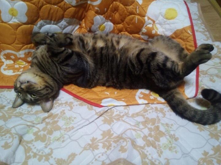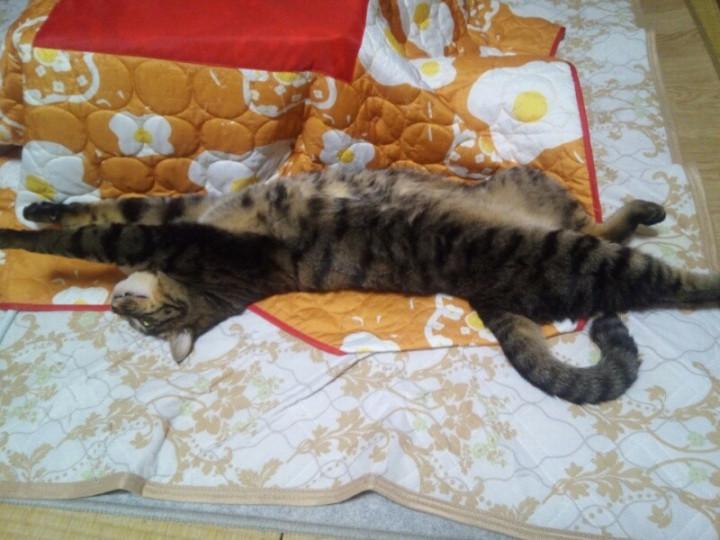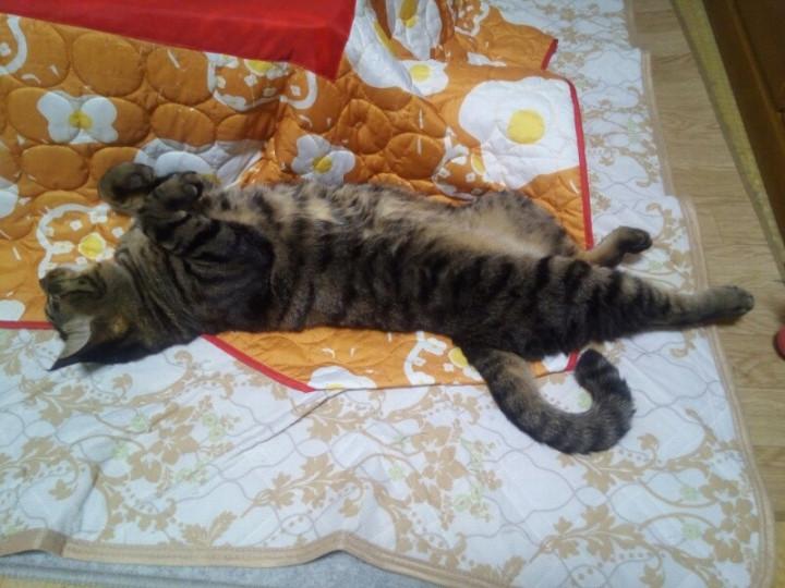 この姿勢で寝てました…(; ̄д ̄)猫として以前に、本当は中身おっさん入ってる疑惑!!