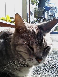 ちょっと逆光気味に撮ってみました。釣り目で鼻が赤く、髭が長い。おまけに縞縞模様です。若い頃はさぞかしモテたんでしょうね~