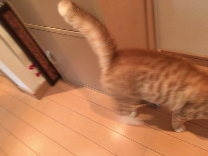 ブレブレですがしっぽこんなにして一日に何度もゴロスリしてきます。バロン氏、保護されたのが8〜9ヵ月でその後に去勢されたので、おそらく発情期は経験済みだったのではないかなと推測されます。