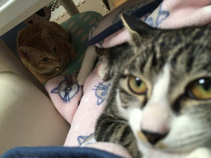 ゲーム設定してたオットの人も動けなくなってました。ねこはお膝ロック。